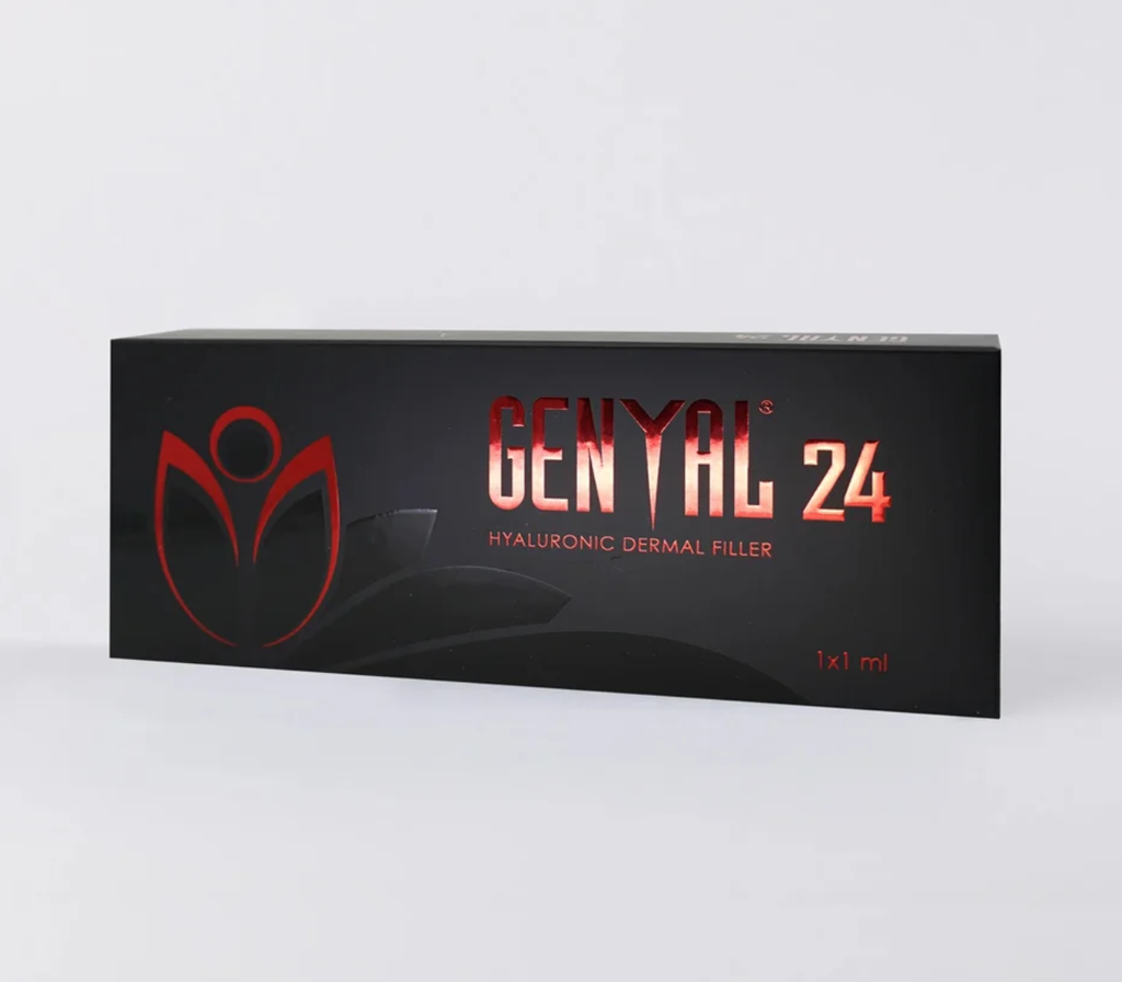 - Genyal® 24 cho phép lấp đầy các “nếp nhăn bù nhìn”, những rãnh nhăn rãnh mũi má rõ rệt nhất, nó có thể tạo độ dày mới cho môi và điều trị tất cả các loại nếp nhăn nói chung. Sản phẩm toàn thân này được tiêm vào lớp hạ bì vừa và sâu.